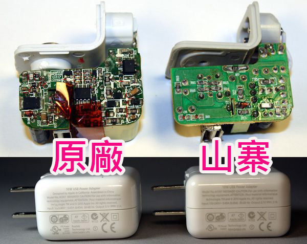 原廠和山寨雖然從外觀看起來都一樣,不過拆開後就天差地別。有些錢不能省,特別是和生命安全有關的充電器。(食神:有批牛肉很便宜,有興趣就打這個電話)